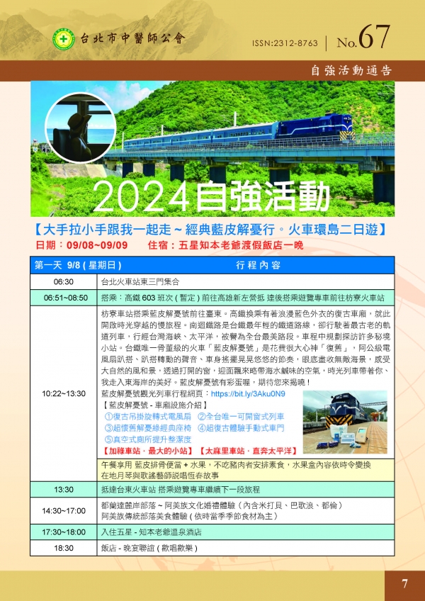 集合時間:105年7月10日(星期日)上午06:40台北車站月台集合搭07:06高鐵列車