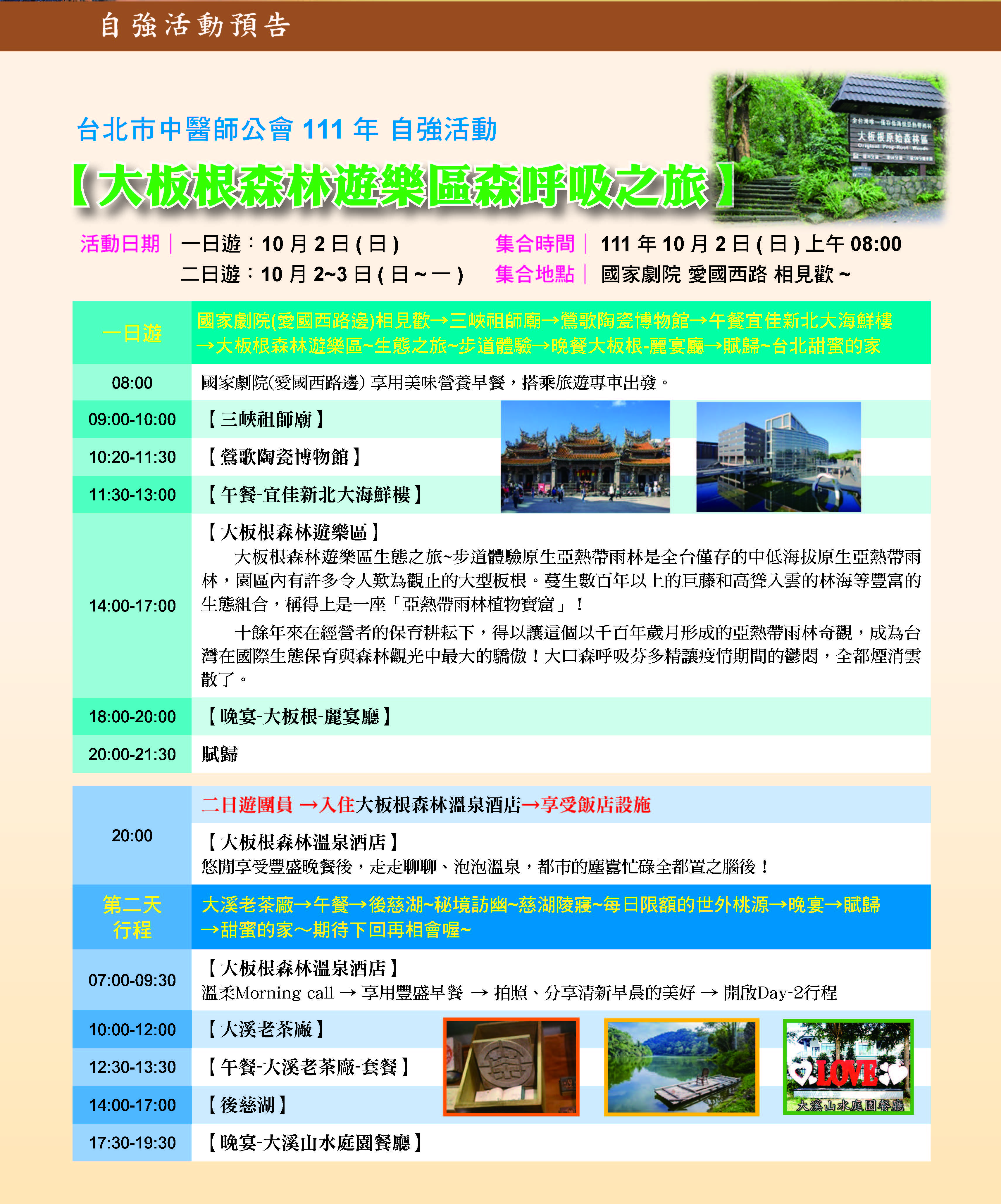 集合時間&地點/110年7月25日(日)上午06:45 台北車站東三門