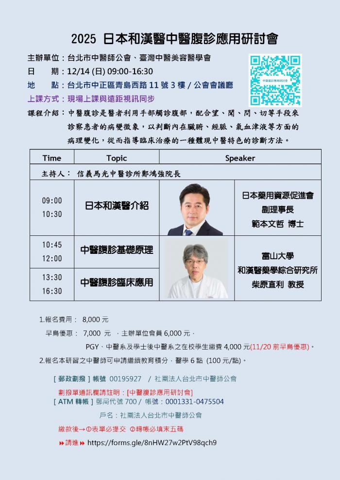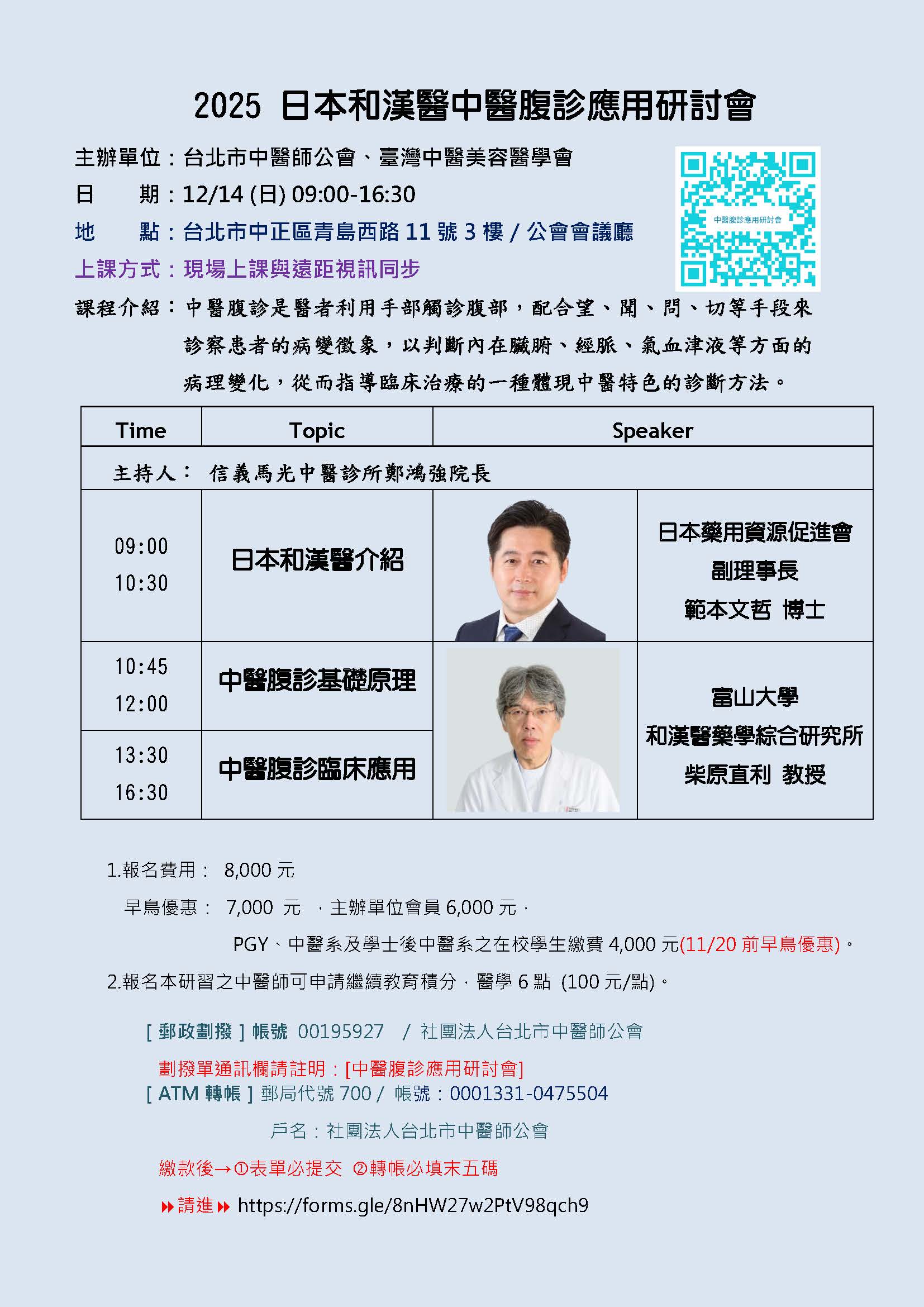 | 台北市中醫師公會 官網:http://www.tpcma.org.tw 地址:台北市中正區青島西路11號3樓 E-mail:tp.cma@msa.hinet.net 電話:(02)2314-3456(代表號) 傳真:(02)2314-8181 |