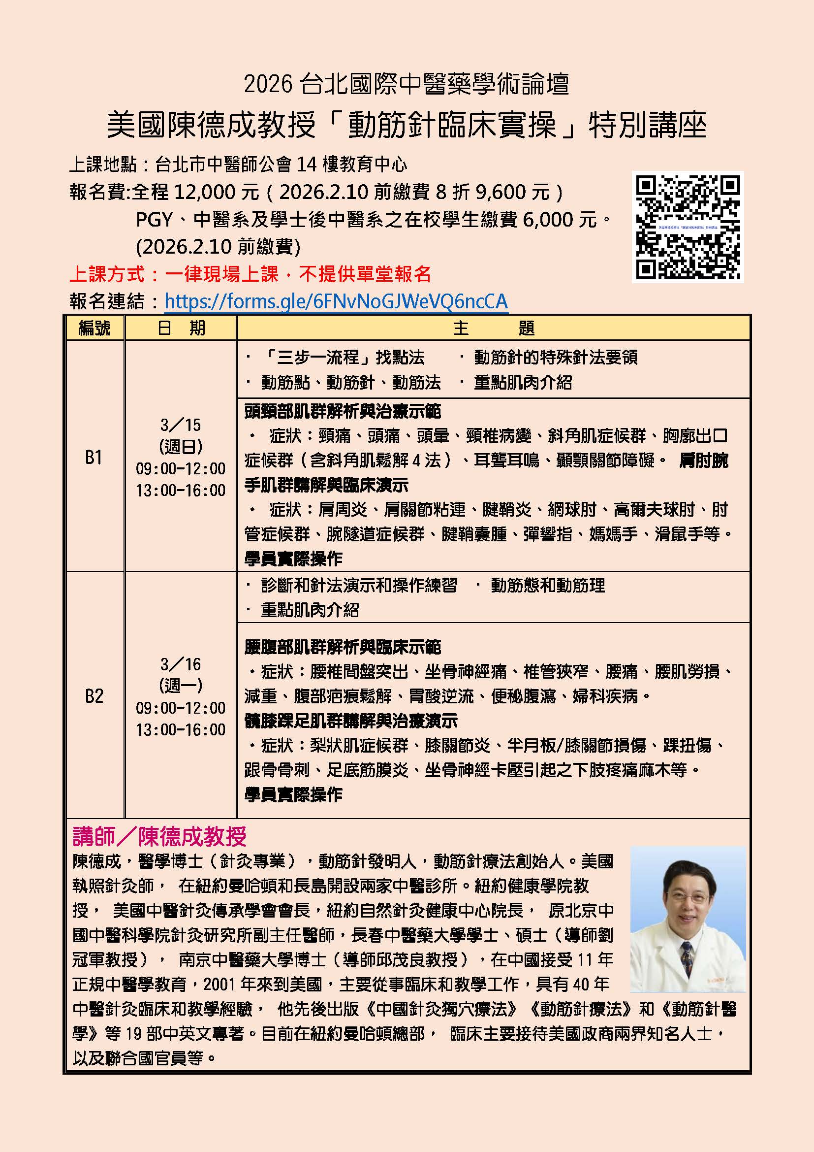 | 台北市中醫師公會 官網:http://www.tpcma.org.tw 地址:台北市中正區青島西路11號3樓 E-mail:tp.cma@msa.hinet.net 電話:(02)2314-3456(代表號) 傳真:(02)2314-8181 |