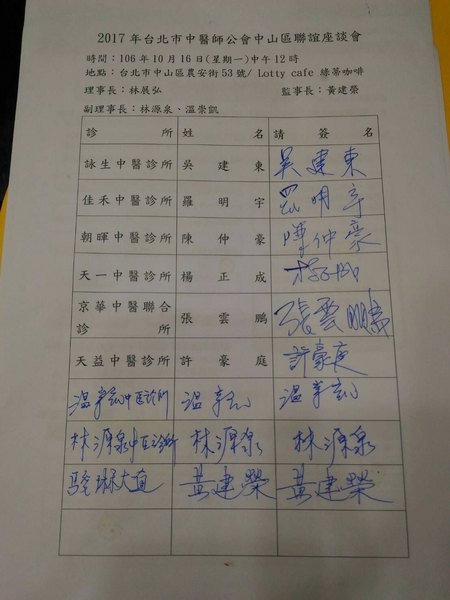 1050811中正大安區中醫院所開執業醫聯誼座談會