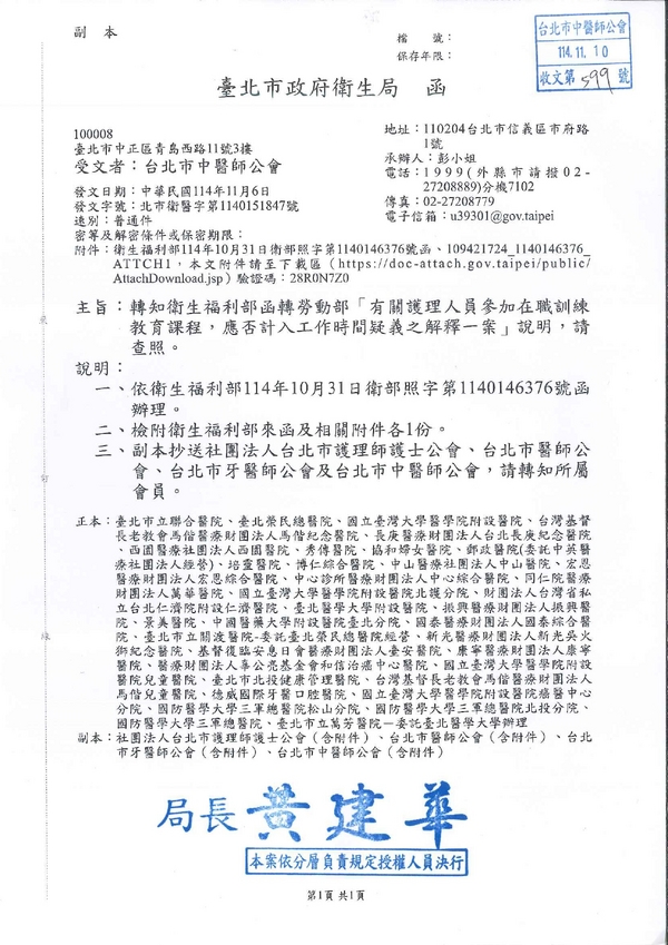 | 台北市中醫師公會 官網:http://www.tpcma.org.tw 地址:台北市中正區青島西路11號3樓 E-mail:tp.cma@msa.hinet.net 電話:(02)2314-3456(代表號) 傳真:(02)2314-8181 |