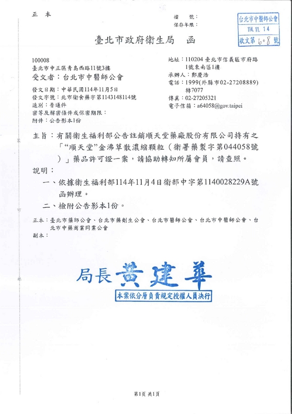 | 台北市中醫師公會 官網:http://www.tpcma.org.tw 地址:台北市中正區青島西路11號3樓 E-mail:tp.cma@msa.hinet.net 電話:(02)2314-3456(代表號) 傳真:(02)2314-8181 |