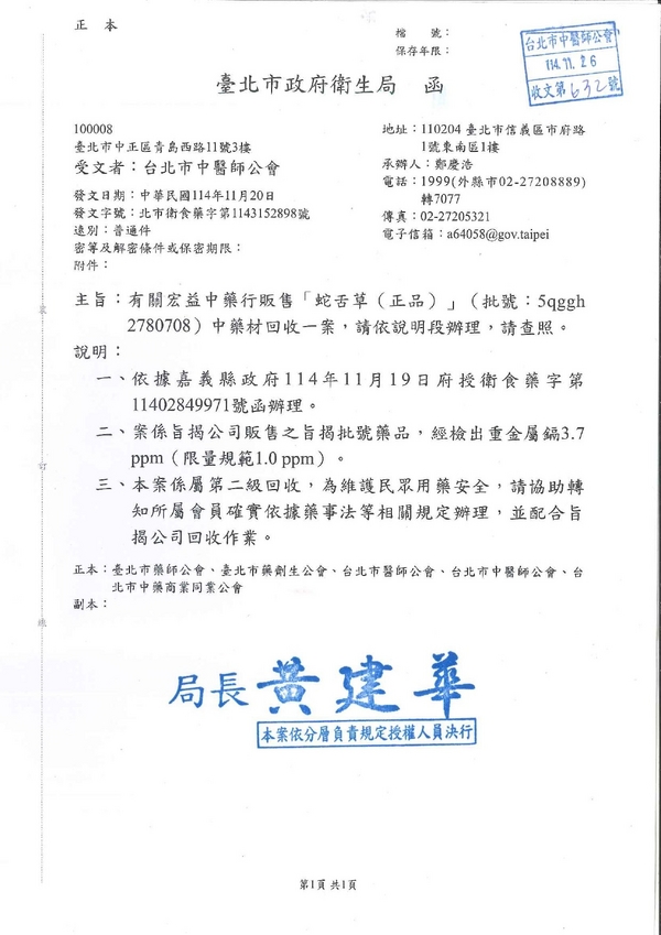 | 台北市中醫師公會 官網:http://www.tpcma.org.tw 地址:台北市中正區青島西路11號3樓 E-mail:tp.cma@msa.hinet.net 電話:(02)2314-3456(代表號) 傳真:(02)2314-8181 |