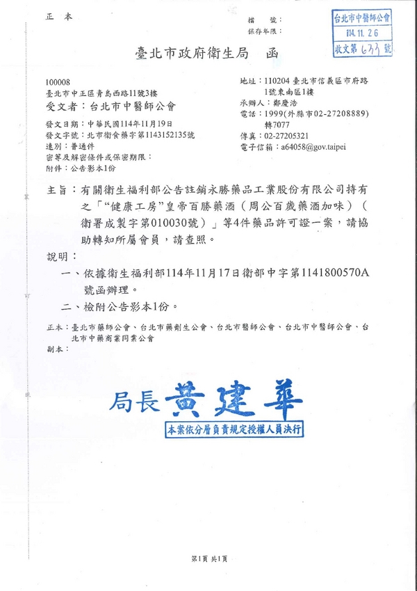 | 台北市中醫師公會 官網:http://www.tpcma.org.tw 地址:台北市中正區青島西路11號3樓 E-mail:tp.cma@msa.hinet.net 電話:(02)2314-3456(代表號) 傳真:(02)2314-8181 |