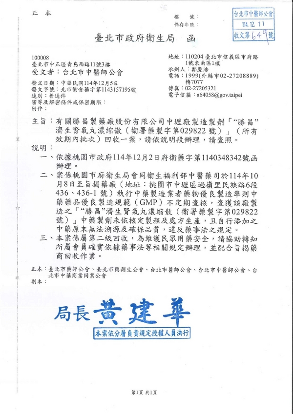 | 台北市中醫師公會 官網:http://www.tpcma.org.tw 地址:台北市中正區青島西路11號3樓 E-mail:tp.cma@msa.hinet.net 電話:(02)2314-3456(代表號) 傳真:(02)2314-8181 |