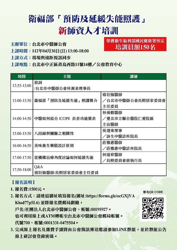 | 台北市中醫師公會 官網:http://www.tpcma.org.tw 地址:台北市中正區青島西路11號3樓 E-mail:tp.cma@msa.hinet.net 電話:(02)2314-3456(代表號) 傳真:(02)2314-8181 |