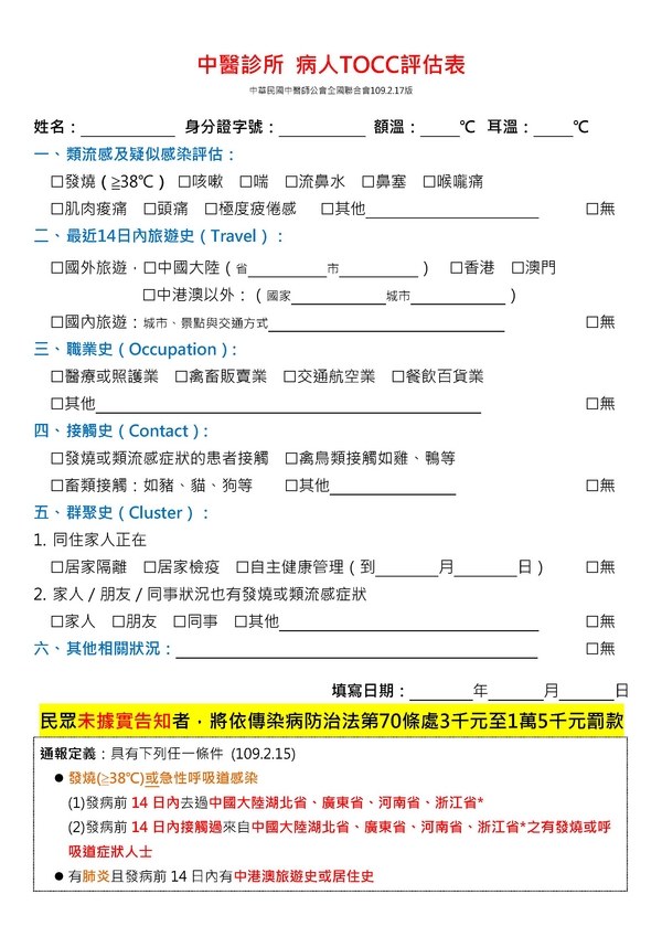| 台北市中醫師公會 官網:http://www.tpcma.org.tw 地址:台北市中正區青島西路11號3樓 E-mail:tp.cma@msa.hinet.net 電話:(02)2314-3456(代表號) 傳真:(02)2314-8181 |