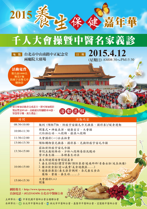 | 台北市中醫師公會 官網:http://www.tpcma.org.tw 地址:台北市中正區青島西路11號3樓 E-mail:tp.cma@msa.hinet.net 電話:(02)2314-3456(代表號) 傳真:(02)2314-8181 |