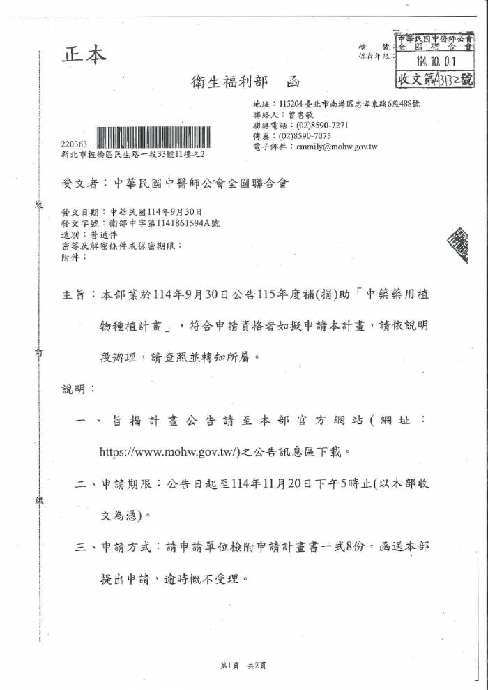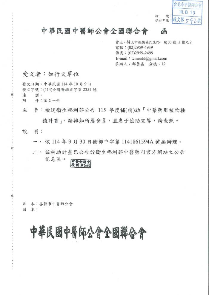 | 台北市中醫師公會 官網:http://www.tpcma.org.tw 地址:台北市中正區青島西路11號3樓 E-mail:tp.cma@msa.hinet.net 電話:(02)2314-3456(代表號) 傳真:(02)2314-8181 |