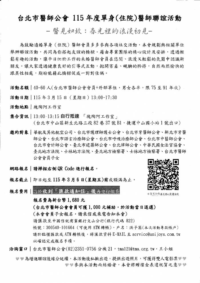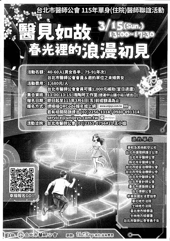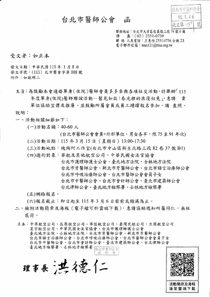 | 台北市中醫師公會 官網:http://www.tpcma.org.tw 地址:台北市中正區青島西路11號3樓 E-mail:tp.cma@msa.hinet.net 電話:(02)2314-3456(代表號) 傳真:(02)2314-8181 |