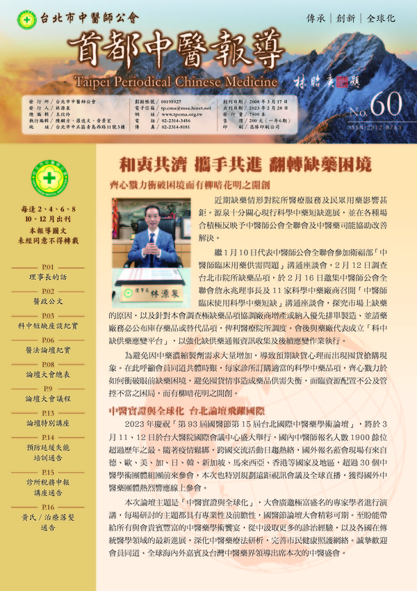 | 台北市中醫師公會 官網:http://www.tpcma.org.tw 地址:台北市中正區青島西路11號3樓 E-mail:tp.cma@msa.hinet.net 電話:(02)2314-3456(代表號) 傳真:(02)2314-8181 |