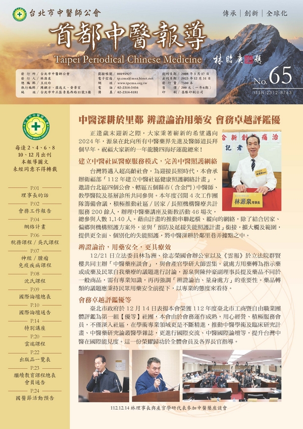 | 台北市中醫師公會 官網:http://www.tpcma.org.tw 地址:台北市中正區青島西路11號3樓 E-mail:tp.cma@msa.hinet.net 電話:(02)2314-3456(代表號) 傳真:(02)2314-8181 |