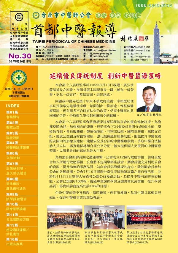 | 台北市中醫師公會 官網:http://www.tpcma.org.tw 地址:台北市中正區青島西路11號3樓 E-mail:tp.cma@msa.hinet.net 電話:(02)2314-3456(代表號) 傳真:(02)2314-8181 |