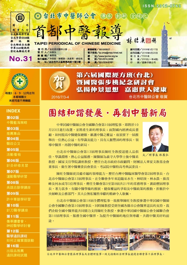 | 台北市中醫師公會 官網:http://www.tpcma.org.tw 地址:台北市中正區青島西路11號3樓 E-mail:tp.cma@msa.hinet.net 電話:(02)2314-3456(代表號) 傳真:(02)2314-8181 |