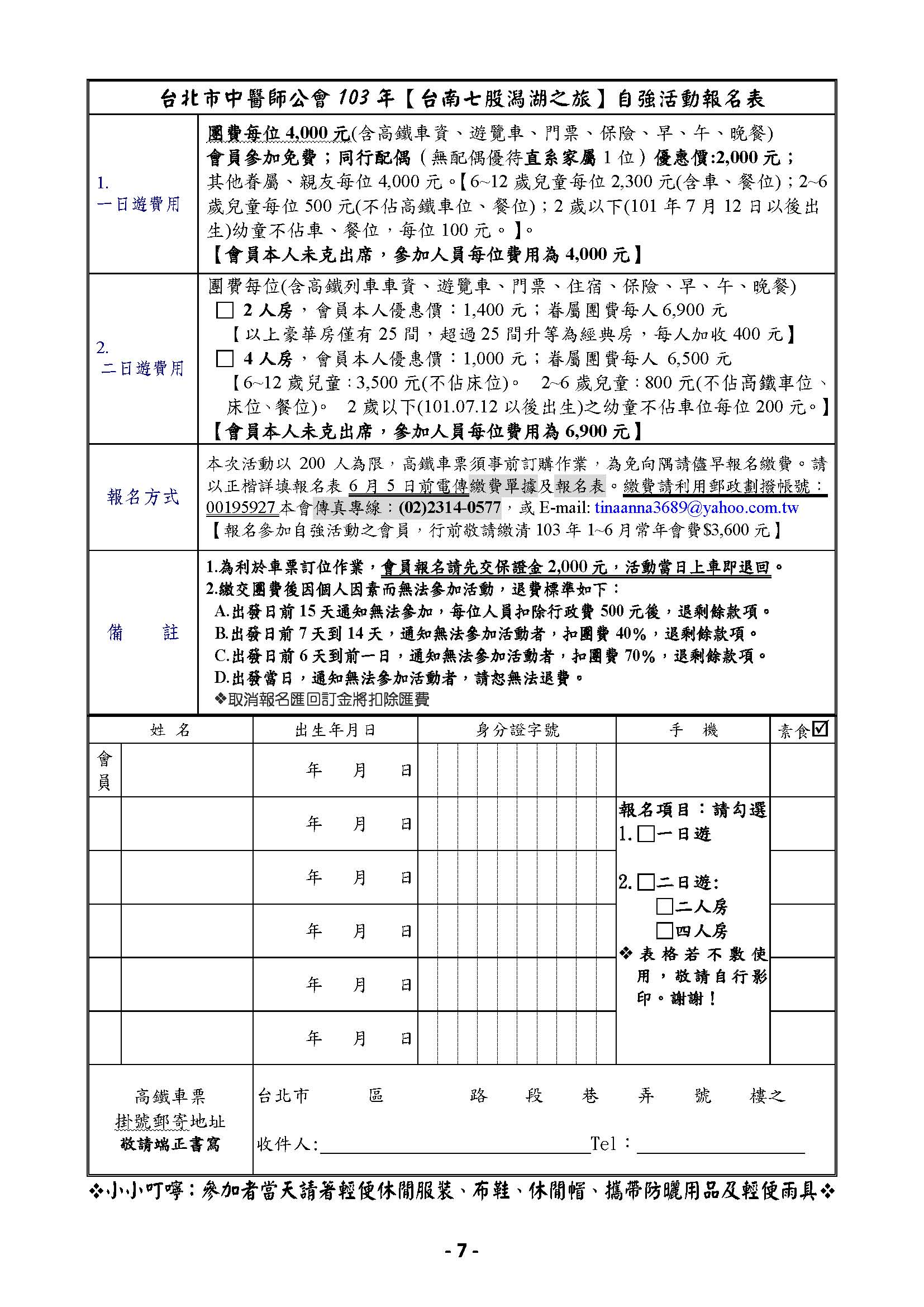 | 台北市中醫師公會 官網:http://www.tpcma.org.tw 地址:台北市中正區青島西路11號3樓 E-mail:tp.cma@msa.hinet.net 電話:(02)2314-3456(代表號) 傳真:(02)2314-8181 |
