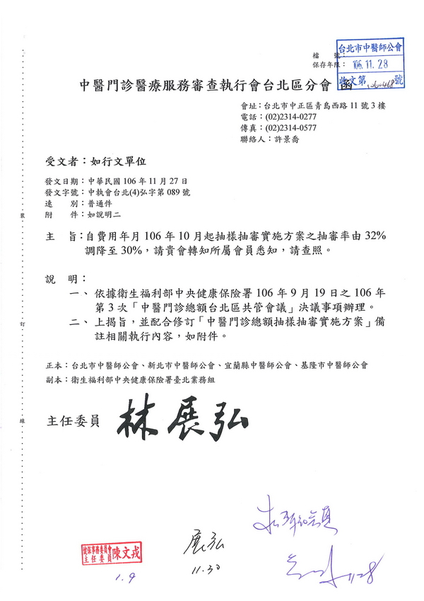 | 台北市中醫師公會 官網:http://www.tpcma.org.tw 地址:台北市中正區青島西路11號3樓 E-mail:tp.cma@msa.hinet.net 電話:(02)2314-3456(代表號) 傳真:(02)2314-8181 |
