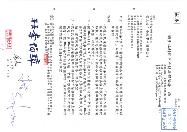 | 台北市中醫師公會 官網:http://www.tpcma.org.tw 地址:台北市中正區青島西路11號3樓 E-mail:tp.cma@msa.hinet.net 電話:(02)2314-3456(代表號) 傳真:(02)2314-8181 |