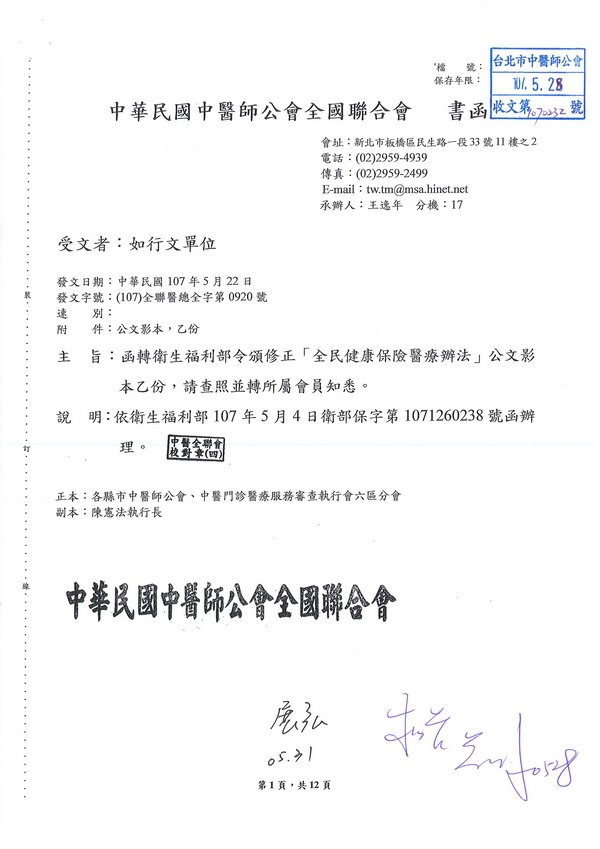 | 台北市中醫師公會 官網:http://www.tpcma.org.tw 地址:台北市中正區青島西路11號3樓 E-mail:tp.cma@msa.hinet.net 電話:(02)2314-3456(代表號) 傳真:(02)2314-8181 |
