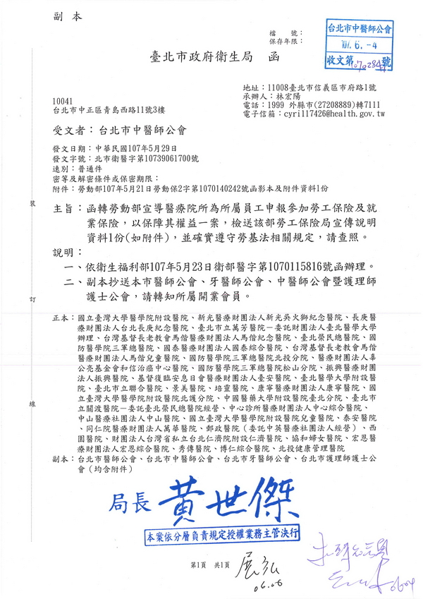 | 台北市中醫師公會 官網:http://www.tpcma.org.tw 地址:台北市中正區青島西路11號3樓 E-mail:tp.cma@msa.hinet.net 電話:(02)2314-3456(代表號) 傳真:(02)2314-8181 |