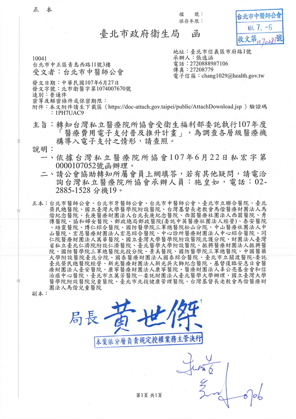 | 台北市中醫師公會 官網:http://www.tpcma.org.tw 地址:台北市中正區青島西路11號3樓 E-mail:tp.cma@msa.hinet.net 電話:(02)2314-3456(代表號) 傳真:(02)2314-8181 |
