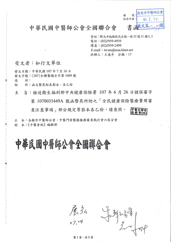 | 台北市中醫師公會 官網:http://www.tpcma.org.tw 地址:台北市中正區青島西路11號3樓 E-mail:tp.cma@msa.hinet.net 電話:(02)2314-3456(代表號) 傳真:(02)2314-8181 |