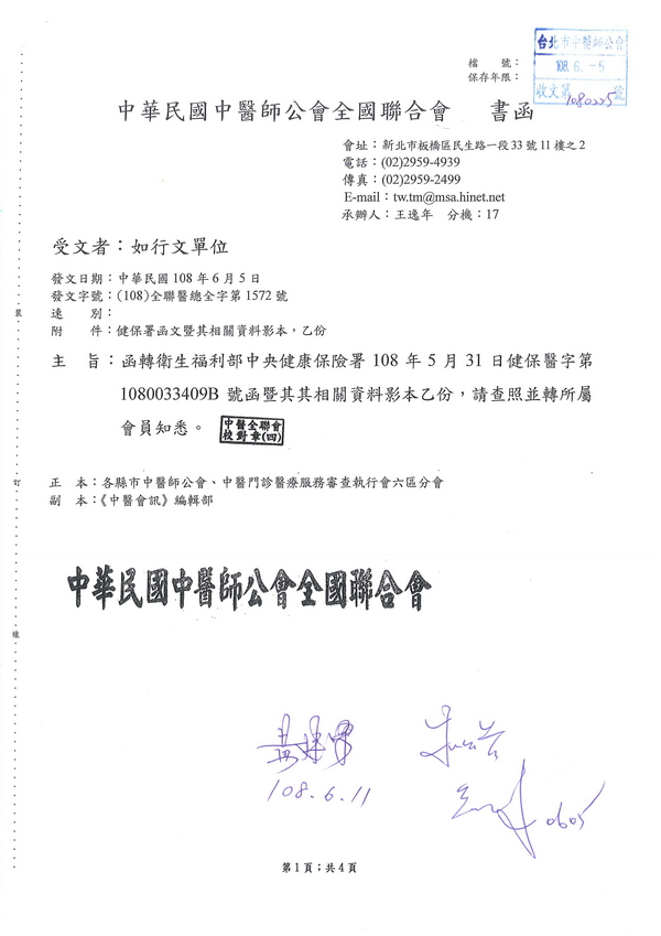 | 台北市中醫師公會 官網:http://www.tpcma.org.tw 地址:台北市中正區青島西路11號3樓 E-mail:tp.cma@msa.hinet.net 電話:(02)2314-3456(代表號) 傳真:(02)2314-8181 |