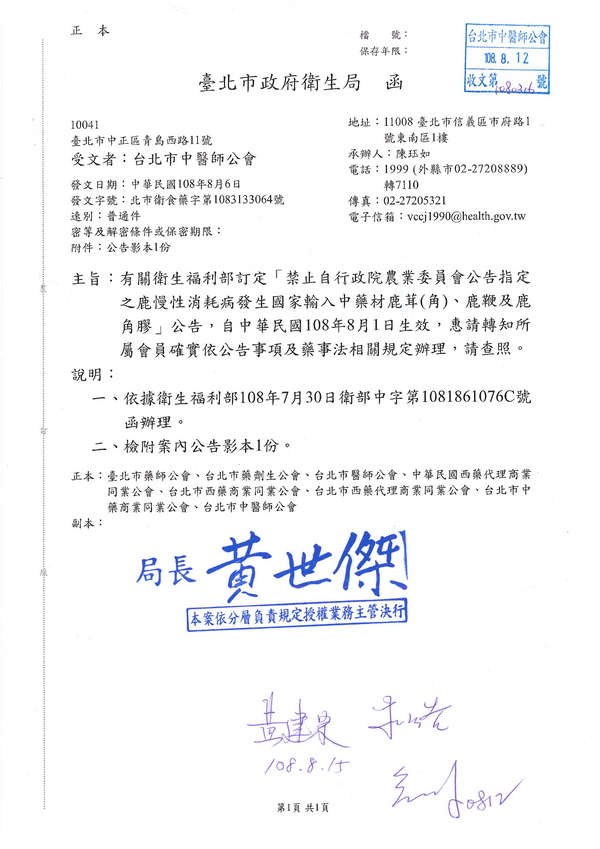 | 台北市中醫師公會 官網:http://www.tpcma.org.tw 地址:台北市中正區青島西路11號3樓 E-mail:tp.cma@msa.hinet.net 電話:(02)2314-3456(代表號) 傳真:(02)2314-8181 |