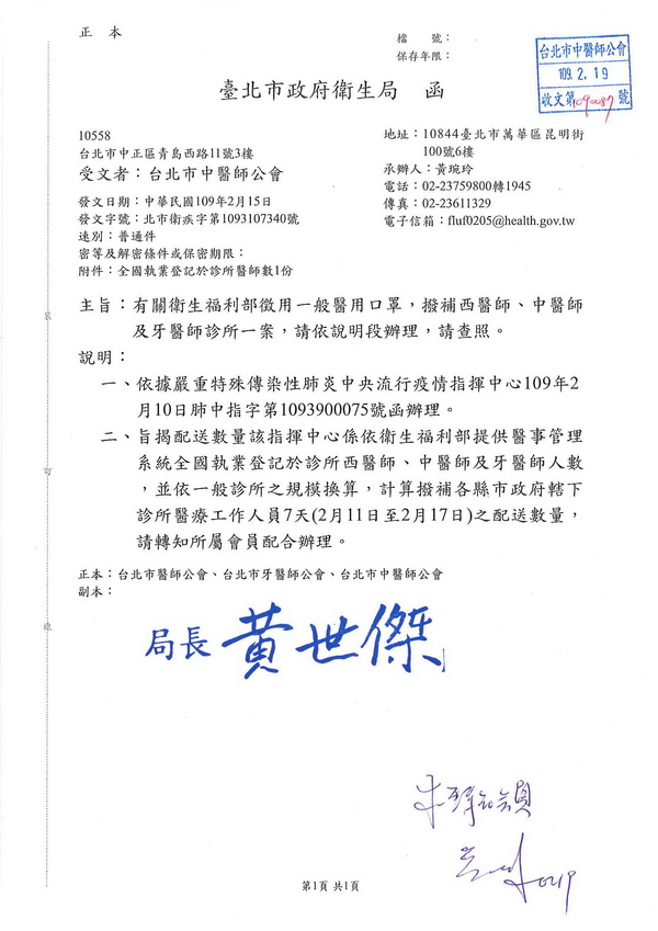 | 台北市中醫師公會 官網:http://www.tpcma.org.tw 地址:台北市中正區青島西路11號3樓 E-mail:tp.cma@msa.hinet.net 電話:(02)2314-3456(代表號) 傳真:(02)2314-8181 |