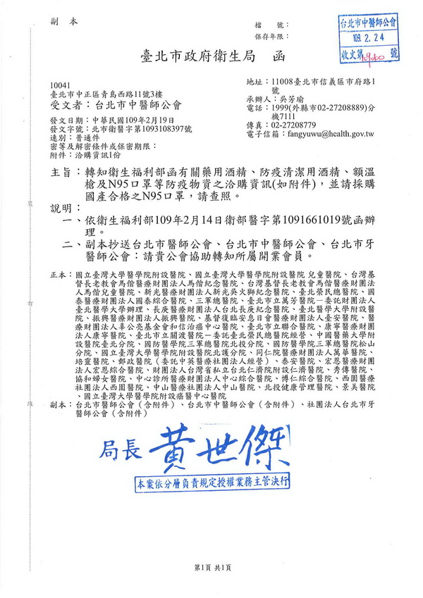 | 台北市中醫師公會 官網:http://www.tpcma.org.tw 地址:台北市中正區青島西路11號3樓 E-mail:tp.cma@msa.hinet.net 電話:(02)2314-3456(代表號) 傳真:(02)2314-8181 |