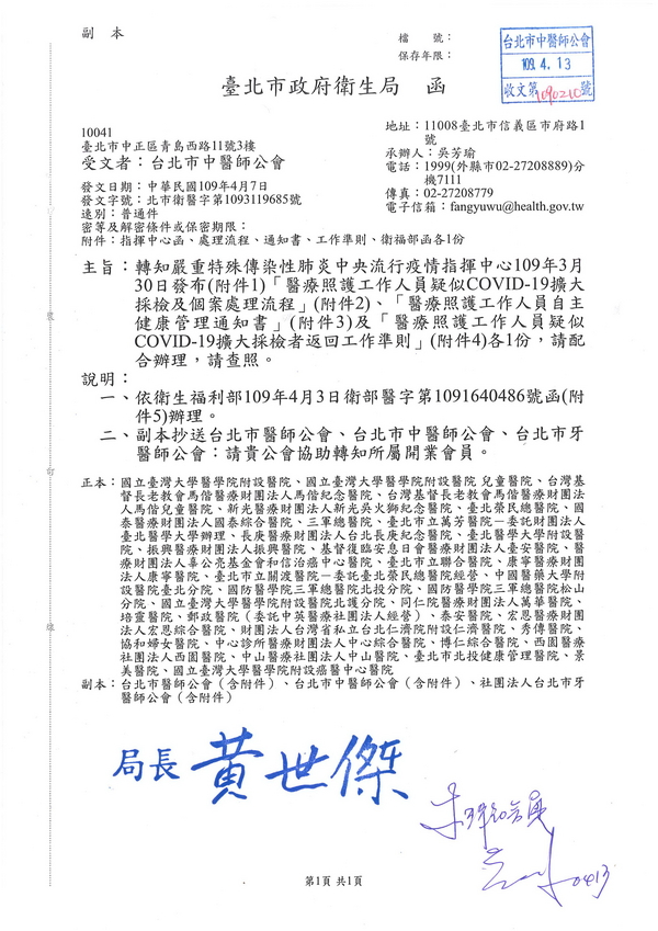 | 台北市中醫師公會 官網:http://www.tpcma.org.tw 地址:台北市中正區青島西路11號3樓 E-mail:tp.cma@msa.hinet.net 電話:(02)2314-3456(代表號) 傳真:(02)2314-8181 |