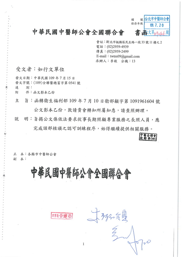 | 台北市中醫師公會 官網:http://www.tpcma.org.tw 地址:台北市中正區青島西路11號3樓 E-mail:tp.cma@msa.hinet.net 電話:(02)2314-3456(代表號) 傳真:(02)2314-8181 |