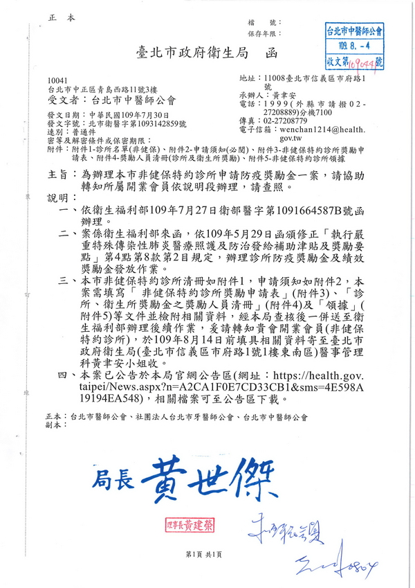 | 台北市中醫師公會 官網:http://www.tpcma.org.tw 地址:台北市中正區青島西路11號3樓 E-mail:tp.cma@msa.hinet.net 電話:(02)2314-3456(代表號) 傳真:(02)2314-8181 |