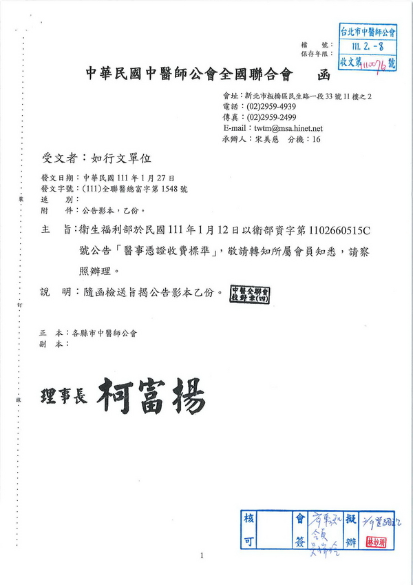 | 台北市中醫師公會 官網:http://www.tpcma.org.tw 地址:台北市中正區青島西路11號3樓 E-mail:tp.cma@msa.hinet.net 電話:(02)2314-3456(代表號) 傳真:(02)2314-8181 |
