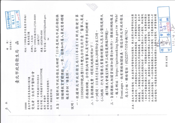 | 台北市中醫師公會 官網:http://www.tpcma.org.tw 地址:台北市中正區青島西路11號3樓 E-mail:tp.cma@msa.hinet.net 電話:(02)2314-3456(代表號) 傳真:(02)2314-8181 |