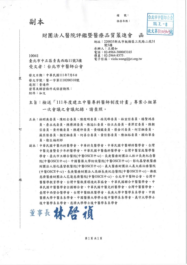 | 台北市中醫師公會 官網:http://www.tpcma.org.tw 地址:台北市中正區青島西路11號3樓 E-mail:tp.cma@msa.hinet.net 電話:(02)2314-3456(代表號) 傳真:(02)2314-8181 |