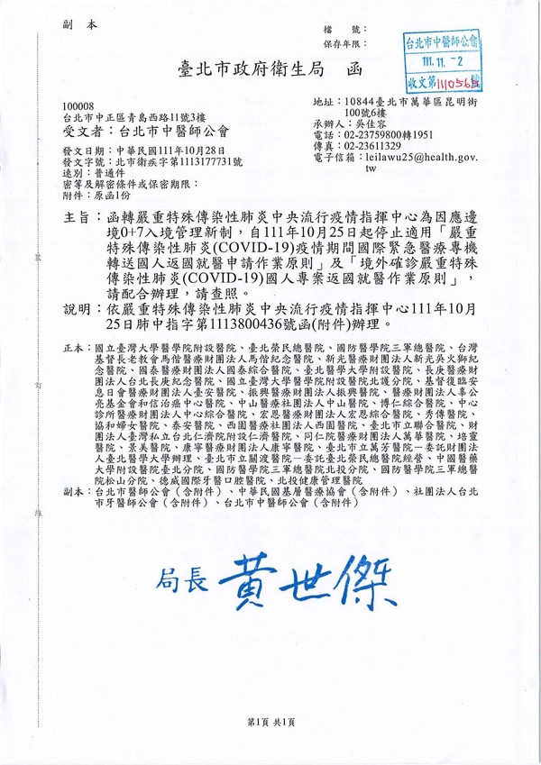 | 台北市中醫師公會 官網:http://www.tpcma.org.tw 地址:台北市中正區青島西路11號3樓 E-mail:tp.cma@msa.hinet.net 電話:(02)2314-3456(代表號) 傳真:(02)2314-8181 |