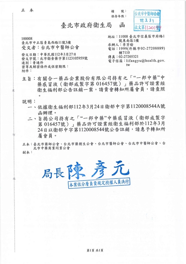 | 台北市中醫師公會 官網:http://www.tpcma.org.tw 地址:台北市中正區青島西路11號3樓 E-mail:tp.cma@msa.hinet.net 電話:(02)2314-3456(代表號) 傳真:(02)2314-8181 |