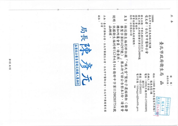 | 台北市中醫師公會 官網:http://www.tpcma.org.tw 地址:台北市中正區青島西路11號3樓 E-mail:tp.cma@msa.hinet.net 電話:(02)2314-3456(代表號) 傳真:(02)2314-8181 |