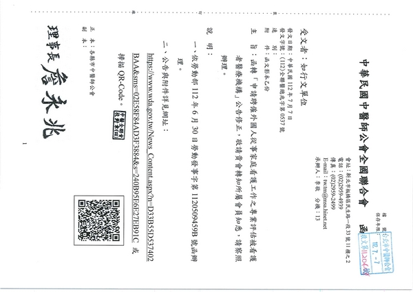 | 台北市中醫師公會 官網:http://www.tpcma.org.tw 地址:台北市中正區青島西路11號3樓 E-mail:tp.cma@msa.hinet.net 電話:(02)2314-3456(代表號) 傳真:(02)2314-8181 |