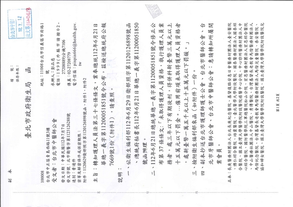 | 台北市中醫師公會 官網:http://www.tpcma.org.tw 地址:台北市中正區青島西路11號3樓 E-mail:tp.cma@msa.hinet.net 電話:(02)2314-3456(代表號) 傳真:(02)2314-8181 |
