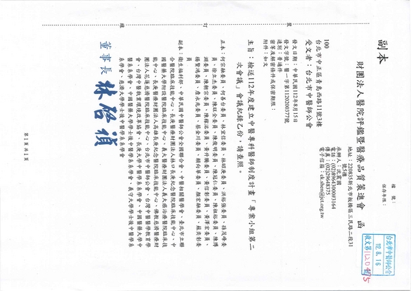 | 台北市中醫師公會 官網:http://www.tpcma.org.tw 地址:台北市中正區青島西路11號3樓 E-mail:tp.cma@msa.hinet.net 電話:(02)2314-3456(代表號) 傳真:(02)2314-8181 |