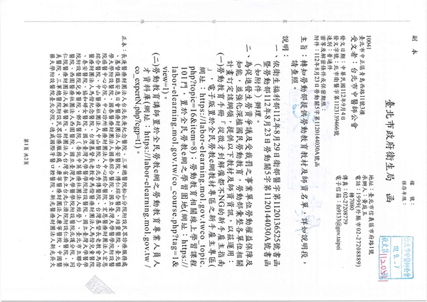 | 台北市中醫師公會 官網:http://www.tpcma.org.tw 地址:台北市中正區青島西路11號3樓 E-mail:tp.cma@msa.hinet.net 電話:(02)2314-3456(代表號) 傳真:(02)2314-8181 |