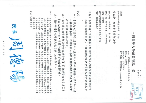 | 台北市中醫師公會 官網:http://www.tpcma.org.tw 地址:台北市中正區青島西路11號3樓 E-mail:tp.cma@msa.hinet.net 電話:(02)2314-3456(代表號) 傳真:(02)2314-8181 |