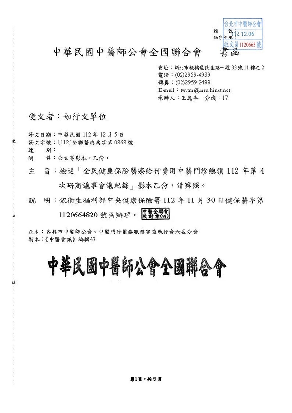 | 台北市中醫師公會 官網:http://www.tpcma.org.tw 地址:台北市中正區青島西路11號3樓 E-mail:tp.cma@msa.hinet.net 電話:(02)2314-3456(代表號) 傳真:(02)2314-8181 |