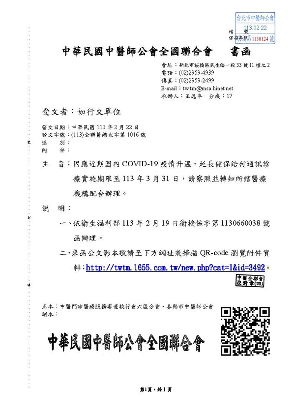 | 台北市中醫師公會 官網:http://www.tpcma.org.tw 地址:台北市中正區青島西路11號3樓 E-mail:tp.cma@msa.hinet.net 電話:(02)2314-3456(代表號) 傳真:(02)2314-8181 |