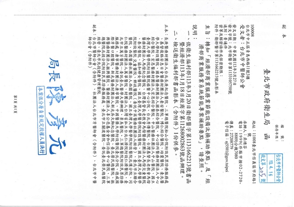 | 台北市中醫師公會 官網:http://www.tpcma.org.tw 地址:台北市中正區青島西路11號3樓 E-mail:tp.cma@msa.hinet.net 電話:(02)2314-3456(代表號) 傳真:(02)2314-8181 |