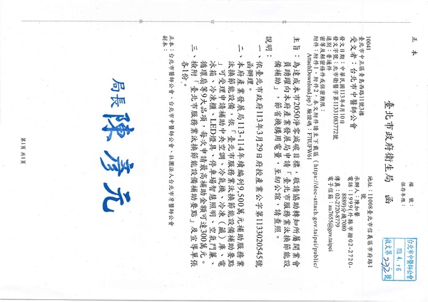 | 台北市中醫師公會 官網:http://www.tpcma.org.tw 地址:台北市中正區青島西路11號3樓 E-mail:tp.cma@msa.hinet.net 電話:(02)2314-3456(代表號) 傳真:(02)2314-8181 |