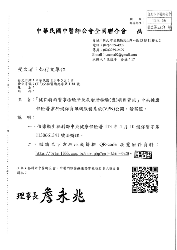| 台北市中醫師公會 官網:http://www.tpcma.org.tw 地址:台北市中正區青島西路11號3樓 E-mail:tp.cma@msa.hinet.net 電話:(02)2314-3456(代表號) 傳真:(02)2314-8181 |