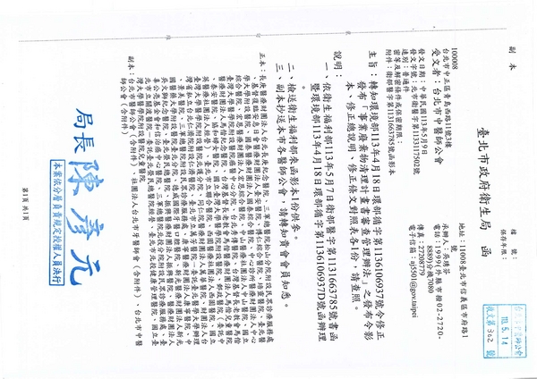 | 台北市中醫師公會 官網:http://www.tpcma.org.tw 地址:台北市中正區青島西路11號3樓 E-mail:tp.cma@msa.hinet.net 電話:(02)2314-3456(代表號) 傳真:(02)2314-8181 |